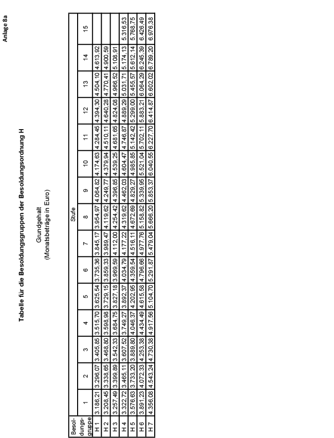 Die Grundgehaltssätze ergeben sich aus den Anlagen 8 und 8a. - 7.3